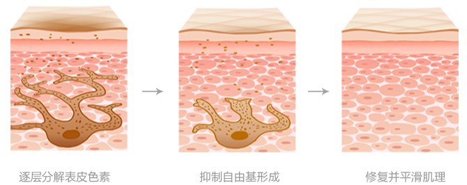双波长光能,直达真皮层,令皮肤基底层黑色素细胞团彻底分化,真正实现从根源上祛斑,还原光感美肌肤。
